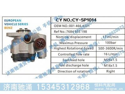 产品: 浏览次数:2奔驰BENZ转向助力泵001 466 4301转向泵 转向助力叶片泵【驰涌液压-汽车转向系统配件制造商】