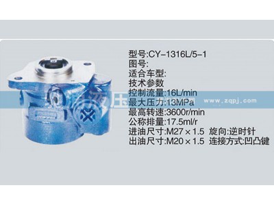 产品: 浏览次数:229朝柴系列转向泵 CY-1316L-5-1转向助力泵、转向助力叶片泵【驰涌液压】