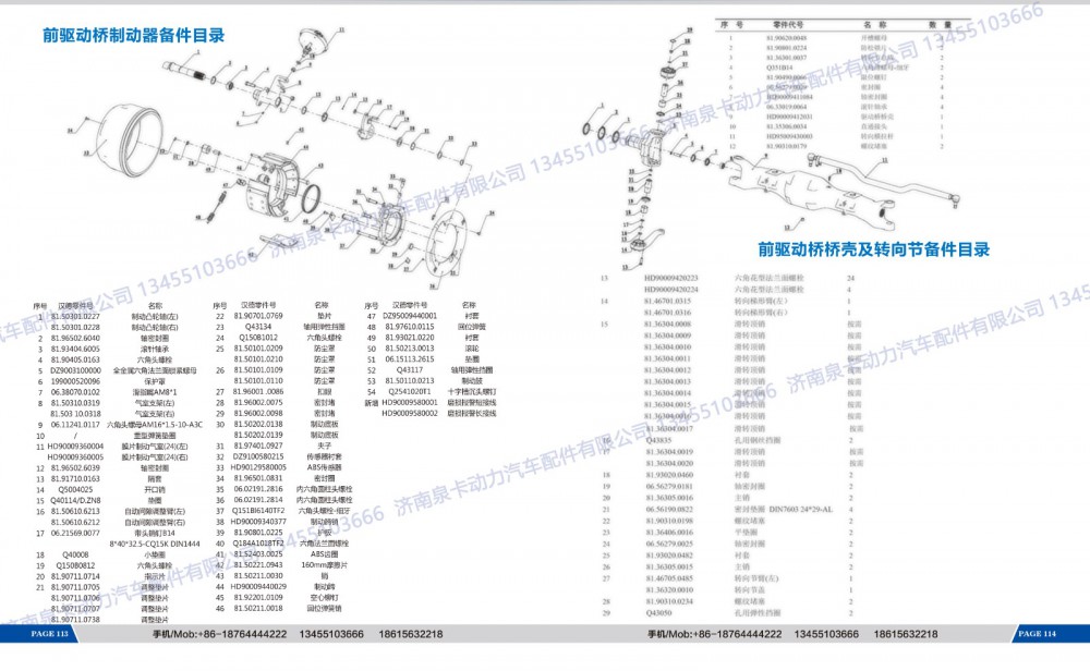 前驱动桥制动器备件目录