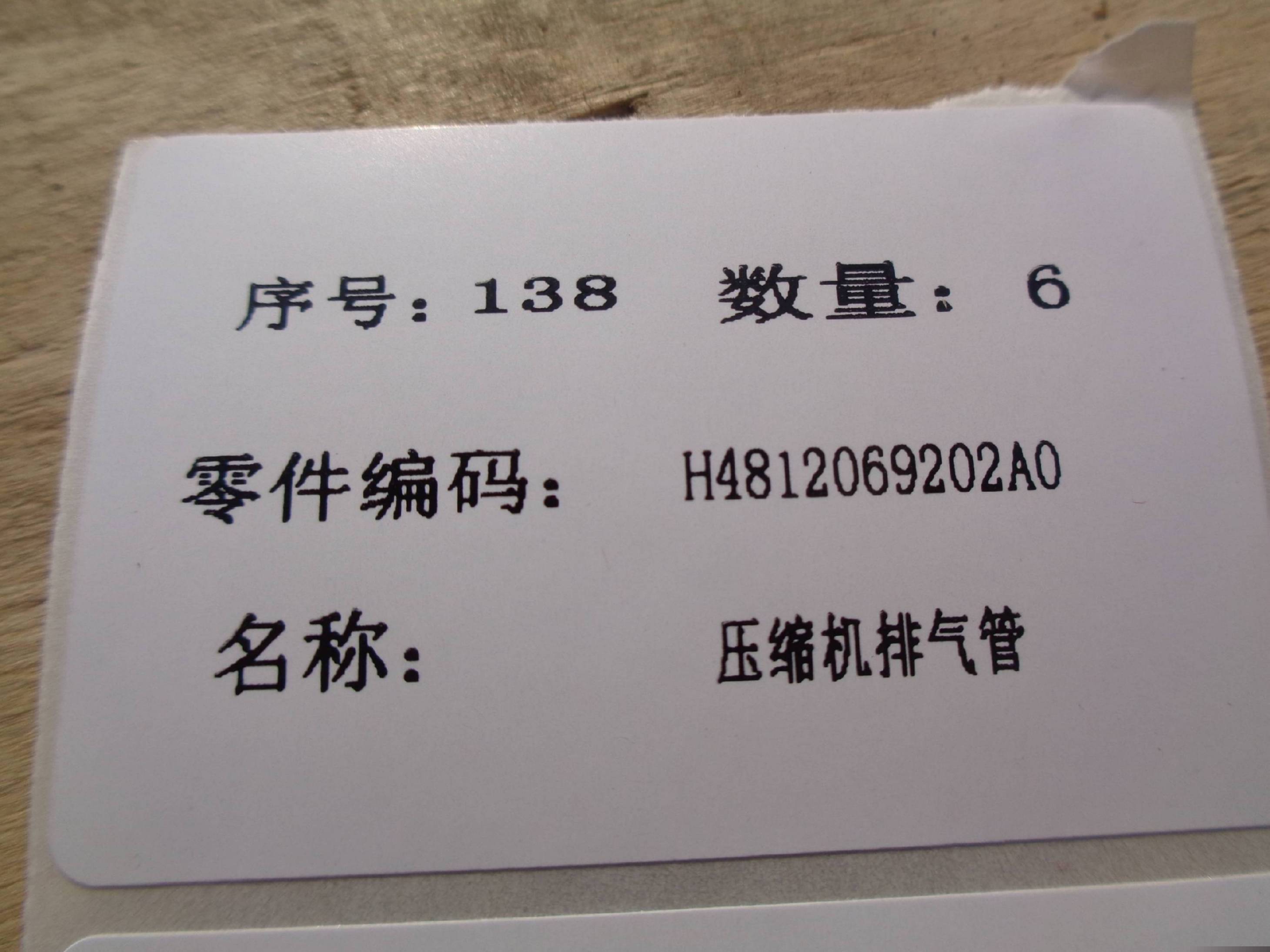 山东勤智德道汽车销售有限公司销售压缩机排气管【H4812069202A0】,价格面议,下面是详细参数及照片。