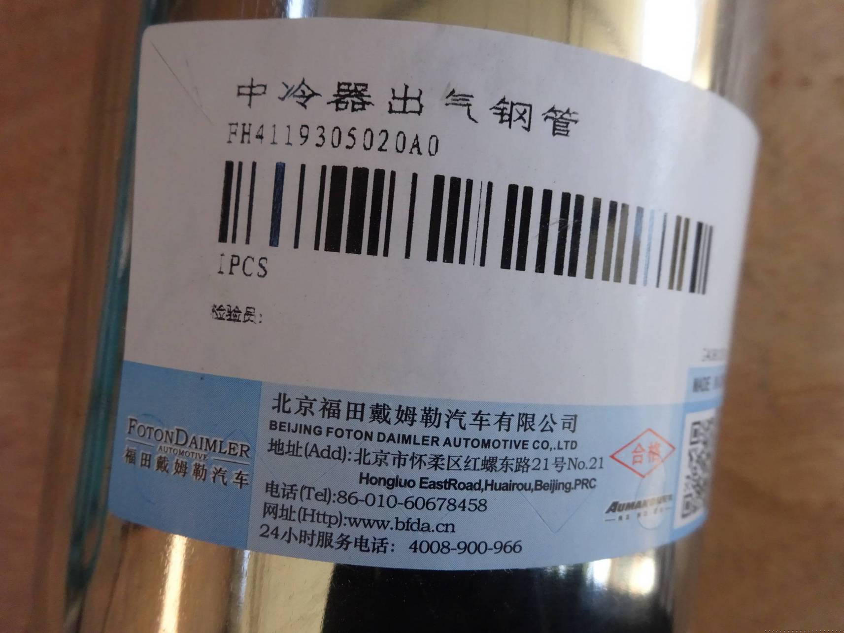 山东勤智德道汽车销售有限公司销售中冷器出气钢管【H4119305020A0】,价格面议,下面是详细参数及照片。