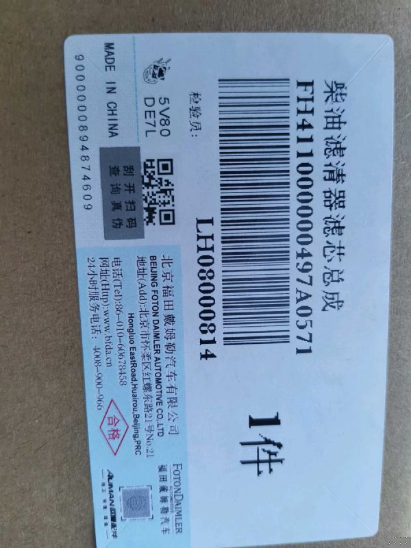 山东勤智德道汽车销售有限公司销售柴油滤清器滤芯总成【H411000000497】,价格面议,下面是详细参数及照片。